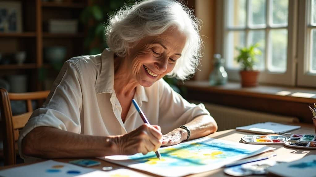 Art therapy can transform your emotional wellness journey through scientifically-proven creative activities that boost serotonin levels and enhance brain function. You don’t need artistic experience to benefit from its stress-reducing and confidence-building effects. Whether through watercolor, clay, or collage, you’ll strengthen both physical coordination and cognitive abilities while forming meaningful connections with peers. The therapeutic power of creative expression offers countless pathways to enhanced well-being in your senior years.